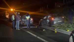 Të pandehurit A.S., dhe I.H., kishi lëvizur paralelisht me automjetet e tyre me një shpejtësi jashtëzakonisht të madhe, dhe në një moment i pandehuri i dytë me automjetin e tij i afrohet të pandehurit të parë, me ç’rast ky i fundit humb kontrollin mbi drejtimin e automjetit duke devijuar në mënyrë diagonale nga shiriti i majtë i rrugës, me ç’rast e godet automjetin e markës ‘’VW Golf’’, i cili ishte i ndalur në shiritin emergjent të austostradës dhe për pasojë godet për vdekje këmbësorët – viktimat N.B., M.D., dhe L.S.